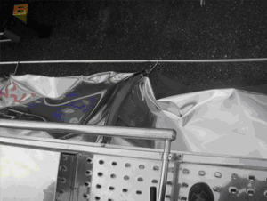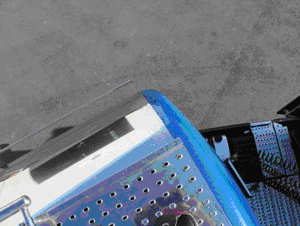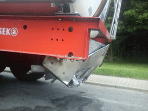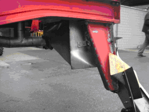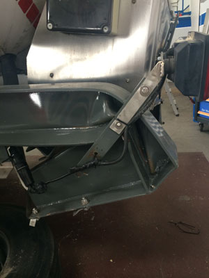 Rahmen durch Auffahrunfall verzogen, Kasten und Auslauf samt Flansche verzogen. Vorher: